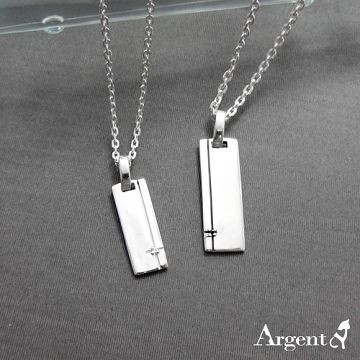 【ARGENT銀飾】情人對墜系列「線鑽(黑鑽+白鑽)」純銀項鍊(男.黑鑽.染黑款+女.白鑽.無染黑款)(一對價)