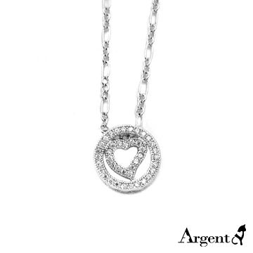 【ARGENT安爵銀飾精品】微鑲鉑銀閃亮系列「愛心圓(白K金)」純銀項鍊 晶鑽圓型包愛心