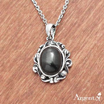 【ARGENT安爵銀飾精品】天然石系列「復古寶鏡(黑星石)」純銀項鍊