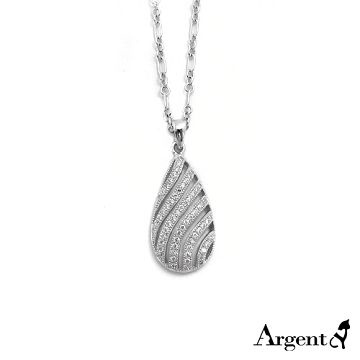 【ARGENT安爵銀飾精品】微鑲鉑銀閃亮系列「螺紋水滴(白K金)」純銀項鍊 水滴造型 晶鑽紋路