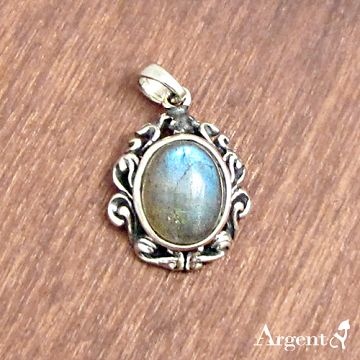 【ARGENT安爵銀飾精品】天然石系列「復古寶鏡(拉長石)」純銀項鍊