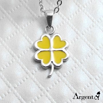 【ARGENT安爵銀飾精品】繽紛琺瑯系列「繽紛幸運草(黃色)」純銀項鍊 背面可加購刻字