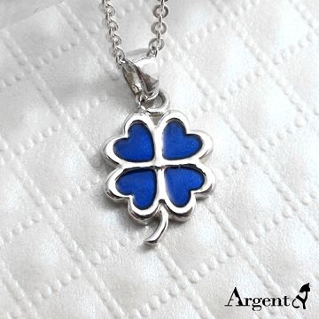 【ARGENT安爵銀飾精品】繽紛琺瑯系列「繽紛幸運草(寶藍色)」純銀項鍊 背面可加購刻字