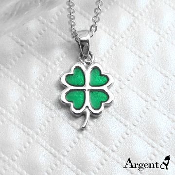 【ARGENT安爵銀飾精品】繽紛琺瑯系列「繽紛幸運草(綠色)」純銀項鍊 背面可加購刻字