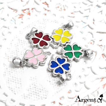 【ARGENT安爵銀飾精品】繽紛琺瑯系列「繽紛幸運草(紅/粉/黃/綠/藍色)」純銀項鍊 背面可加購刻字(單條價)