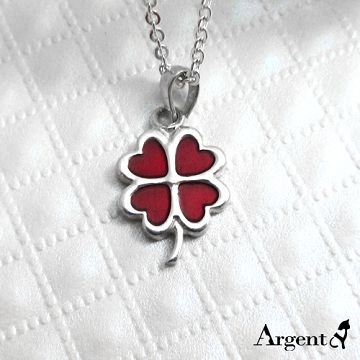 【ARGENT安爵銀飾精品】繽紛琺瑯系列「繽紛幸運草(紅色)」純銀項鍊 背面可加購刻字