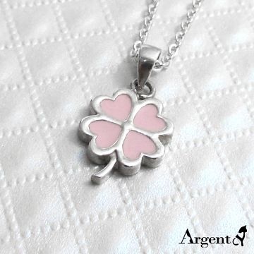 【ARGENT安爵銀飾精品】繽紛琺瑯系列「繽紛幸運草(粉色)」純銀項鍊 背面可加購刻字