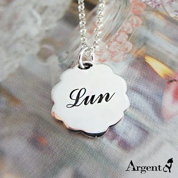【ARGENT安爵銀飾】「純銀-花花牌-單面刻字(雷刻.深刻)-英文」純銀項鍊
