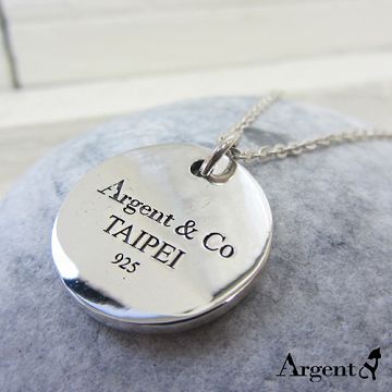 【ARGENT安爵銀飾】「純銀-大圓牌(平面)-單面刻字-雷射刻字-中文/英文刻字」純銀項鍊 (單面刻字款)可選字染黑/無染黑