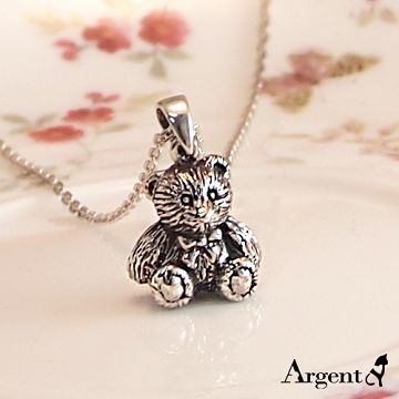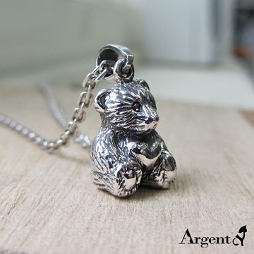 【ARGENT安爵銀飾精品】動物系列「領結小熊(染黑) 」純銀項鍊