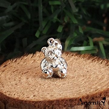 【ARGENT安爵銀飾精品】動物系列「愛心小熊(染黑) 」純銀項鍊 (背面可加購刻字)