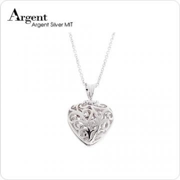 【ARGENT銀飾】愛心系列「心鑽(白鑽)(白K金)」純銀項鍊