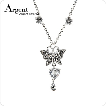 【ARGENT銀飾】微鑲鉑銀閃亮系列「小蝴蝶(白K金)」純銀項鍊