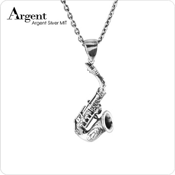 【ARGENT銀飾】樂器系列「薩克斯風」純銀項鍊(染黑款)
