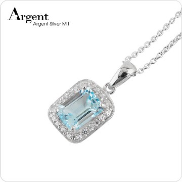 【ARGENT銀飾】晶鑽系列「簡約寶鑽(天藍色)(白K金)」純銀項鍊 可搭配同款耳環成套組