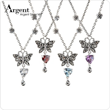 【ARGENT銀飾】動物系列「鑽蝶(白/淺藍色/紫/紅)」純銀項鍊(單條價)(金剛鑽與天然石Topaz)