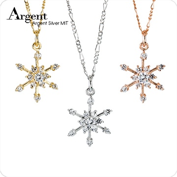 【ARGENT銀飾】聖誕系列「鑽版雪花(玫瑰金/白K金/黃K金)(3色選1)」純銀項鍊(單條價)