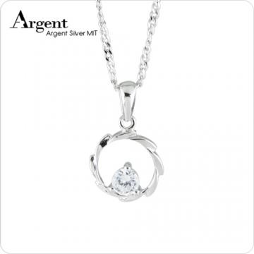 【ARGENT銀飾】微鑲鉑銀閃亮系列「唯一情緣(白K金)」純銀項鍊