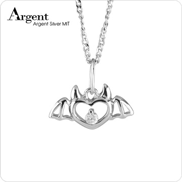 【ARGENT銀飾】微鑲鉑銀閃亮系列「浪漫小惡魔(白K金)」純銀項鍊