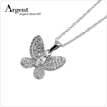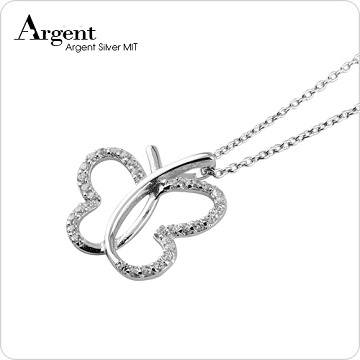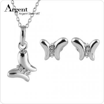 【ARGENT銀飾】微鑲鉑銀閃亮系列「小蝴蝶(白K金)」 純銀項鍊+耳環(套組)