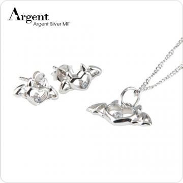 【ARGENT銀飾】微鑲鉑銀閃亮系列「浪漫小惡魔(白K金)」 純銀項鍊+耳環(套組)