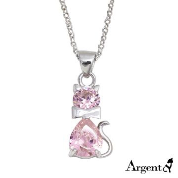 【ARGENT安爵銀飾精品】貓咪系列「優雅貓(粉紅鑽)(白K金)」純銀項鍊