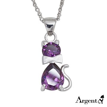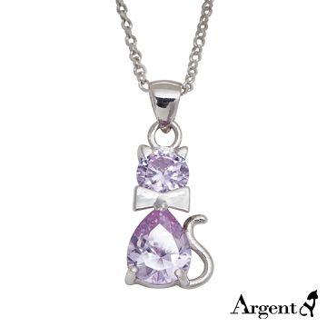 【ARGENT安爵銀飾精品】貓咪系列「優雅貓(淺紫鑽)(白K金)」純銀項鍊