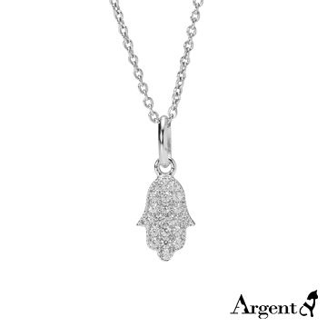 【ARGENT安爵銀飾精品】微鑲鉑銀閃亮系列「晶鑽佛手(小)(白K金)」純銀項鍊 滿鑽幸運佛手