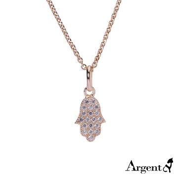 【ARGENT安爵銀飾精品】微鑲鉑銀閃亮系列「晶鑽佛手(小)(玫瑰金)」純銀項鍊 滿鑽幸運佛手