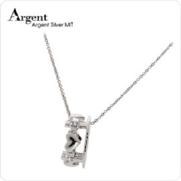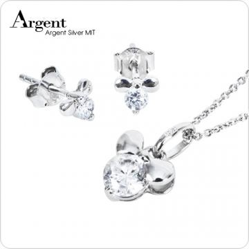 【ARGENT安爵銀飾精品】微鑲鉑銀閃亮系列「浪漫情結(白K金)」 純銀項鍊+耳環(套組)