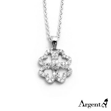 【ARGENT安爵銀飾精品】微鑲鉑銀閃亮系列「晶鑽幸運草(白K金)」純銀項鍊