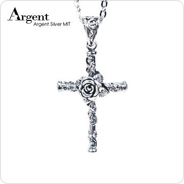 【ARGENT安爵銀飾精品】十字架系列「玫瑰十字架(白鑽)」純銀項鍊(染黑款)