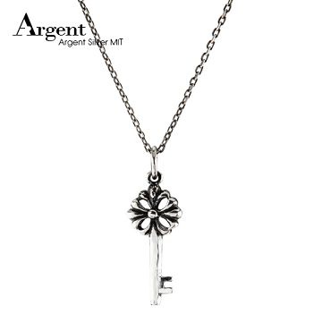 【ARGENT安爵銀飾精品】鑰匙系列「優雅花鑰」純銀項鍊(染黑款)(單條價)
