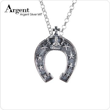 【ARGENT安爵銀飾精品】造型系列「皇冠馬蹄(大)」純銀項鍊(染黑款)