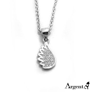 【ARGENT安爵銀飾精品】微鑲鉑銀閃亮系列「小鑽羽(白K金)」純銀項鍊 晶鑽填滿小羽毛