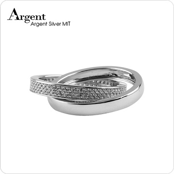 【ARGENT銀飾】微鑲鉑銀閃亮系列「閃耀雙環(白K金)」純銀戒指