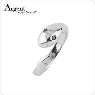 【ARGENT銀飾】動物系列「蛇(黑鑽)」純銀戒指
