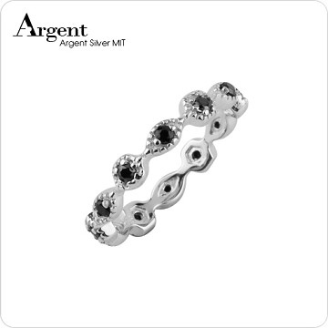 【ARGENT銀飾】微鑲鉑銀閃亮系列「浪漫花邊(黑鑽)(白K金)」純銀戒指