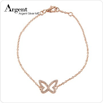 【ARGENT銀飾】微鑲鉑銀閃亮系列「晶鑽蝶舞(玫瑰金)」純銀手鍊