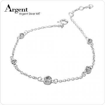 【ARGENT銀飾】微鑲鉑銀閃亮系列「晶鑽點滴(白K金)」純銀手鍊