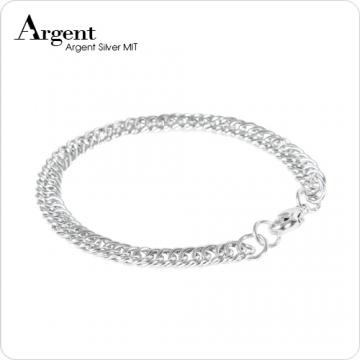【ARGENT銀飾】手工鍊系列「扁鍊(中.密)」純銀手鍊 (20公分)