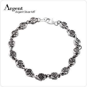 【ARGENT銀飾】花朵系列「薔薇」純銀手鍊(染黑)