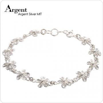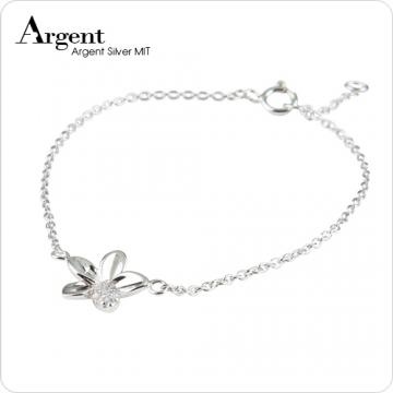 【ARGENT銀飾】微鑲鉑銀閃亮系列「晶鑽花漾(白K金)」純銀手鍊