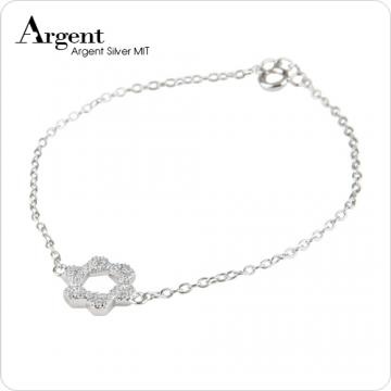 【ARGENT銀飾】微鑲鉑銀閃亮系列「晶鑽六芒星(白K金)」純銀手鍊