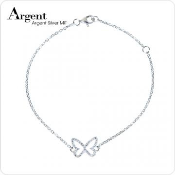 【ARGENT銀飾】微鑲鉑銀閃亮系列「晶鑽蝶舞(白K金)」純銀手鍊