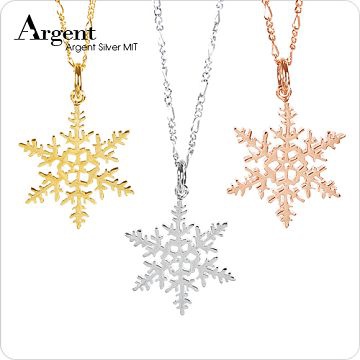 【ARGENT銀飾】聖誕系列「雪片(玫瑰金/白K金/黃K金)(3色選1)」純銀項鍊(單條價)