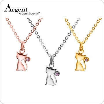 【ARGENT銀飾】迷你系列「小貓咪(粉鑽)(玫瑰金/白K金/黃K金)(3色選1)」純銀項鍊(單條價)