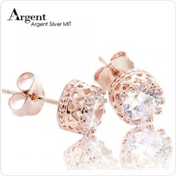 【ARGENT銀飾】單鑽系列「玫瑰金-圓鑽-皇冠耳環」純銀耳環