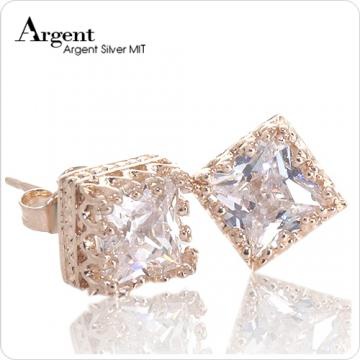 【ARGENT銀飾】單鑽系列「玫瑰金-方鑽-皇冠耳環」純銀耳環